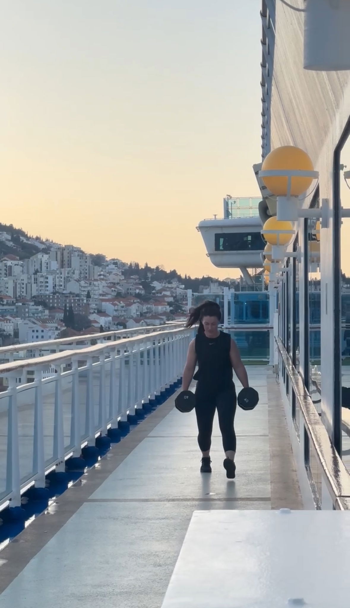 BUT I did sneak outside for walking lunges on the deck before our day in Corfu, Greece.
